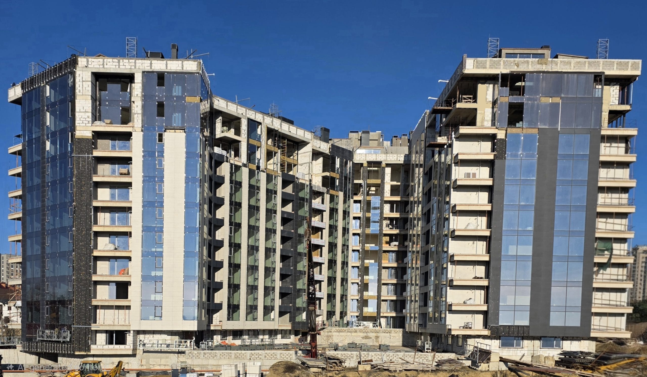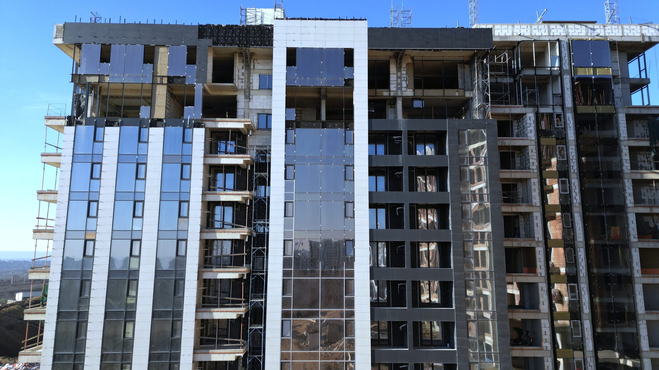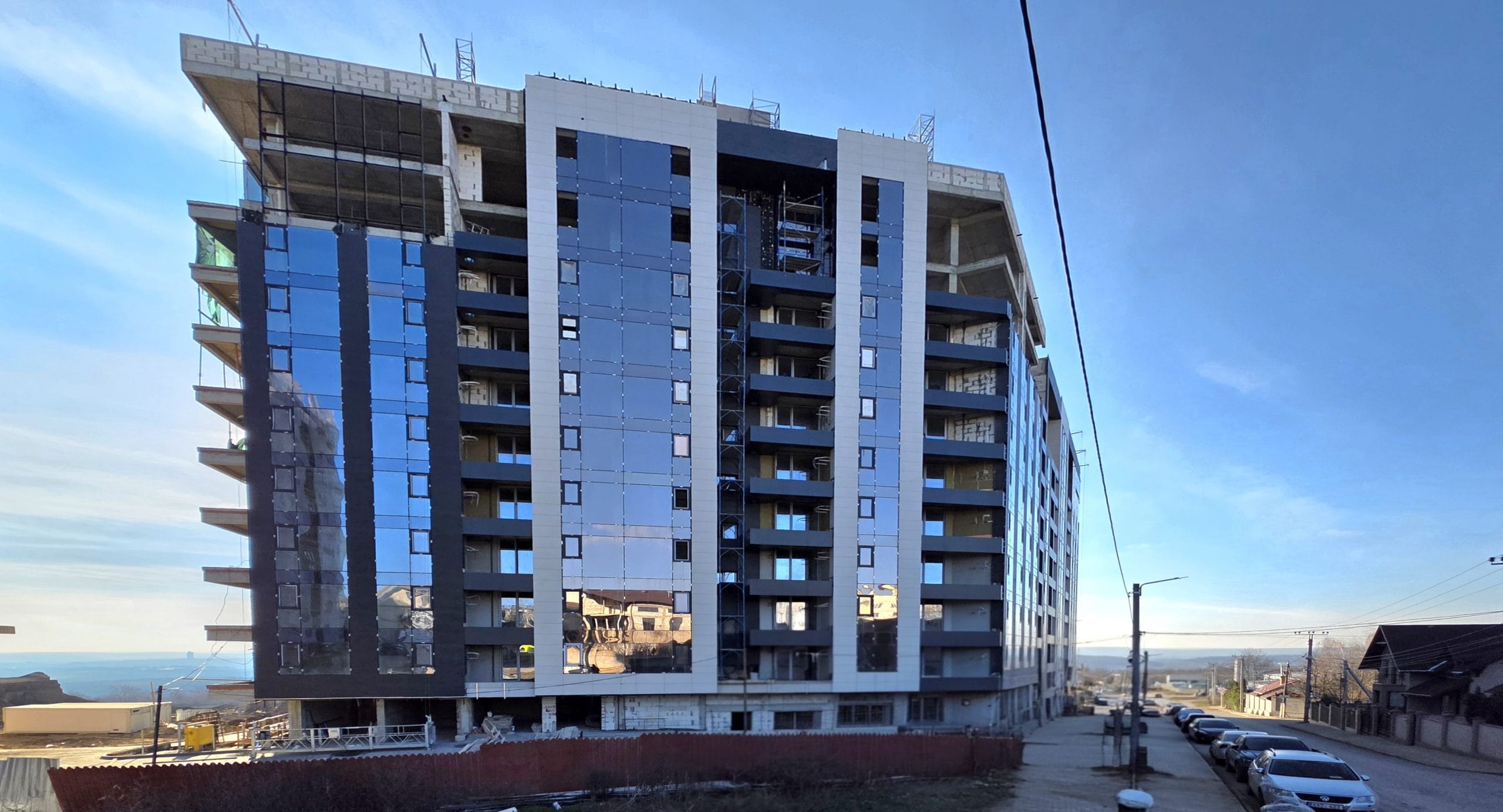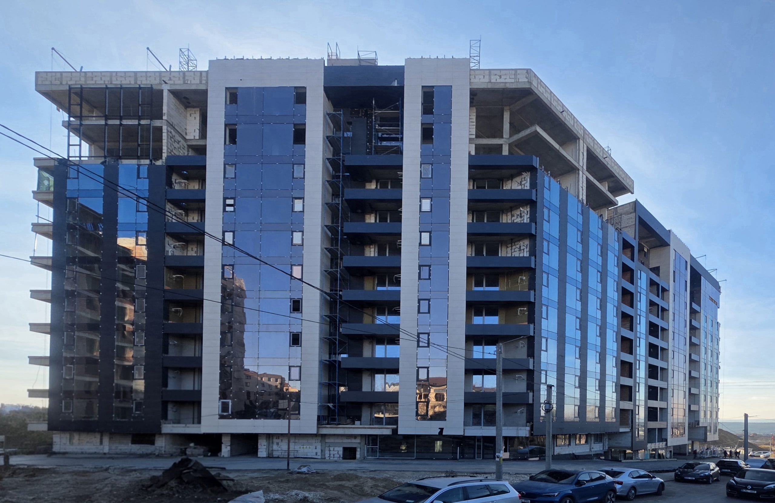Apartamente cu încălzire prin pardoseală, fațade ventilate, uși blindate și geamuri panoramice.